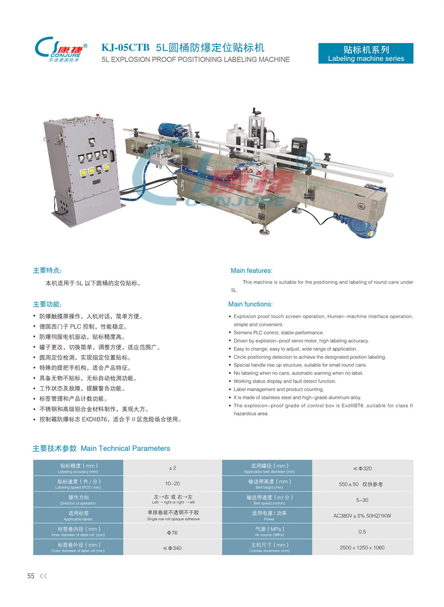 KJ-05CTB 5L圓桶防爆定位貼標(biāo)機(jī)