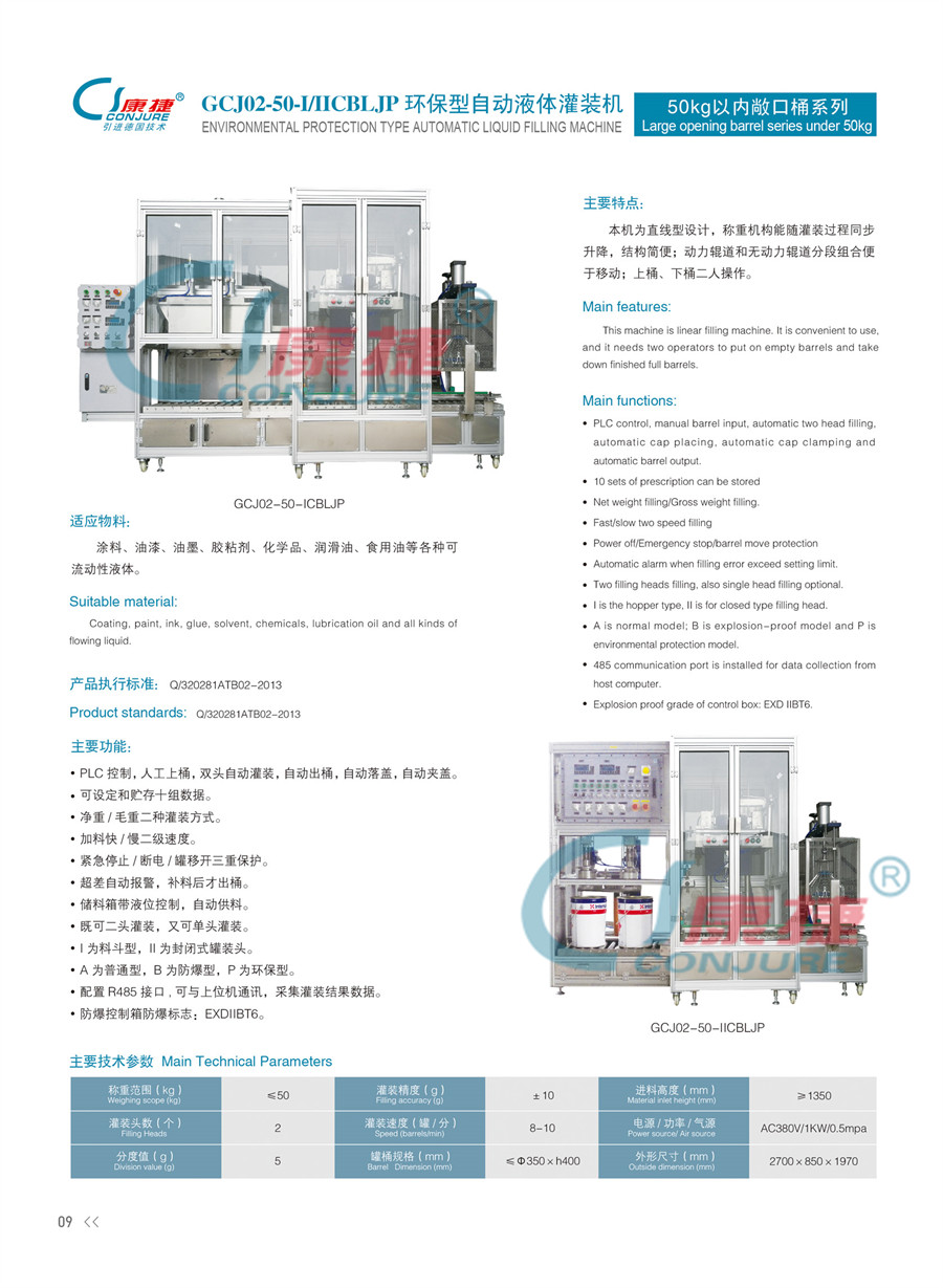 GCJ02-50-I/IICBLJP環(huán)保型自動(dòng)液體灌裝機(jī)