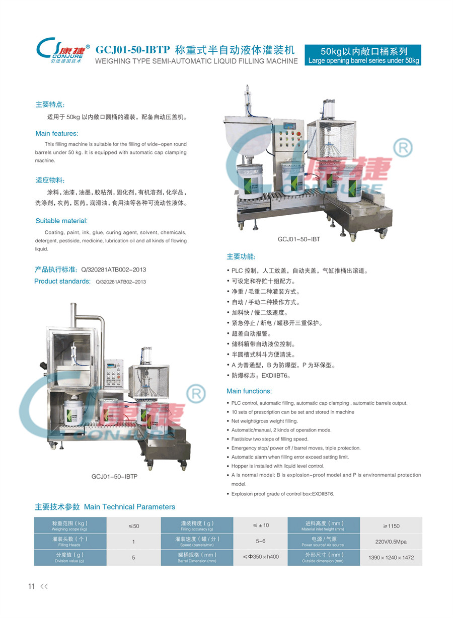 GCJ01-50-IBTP稱重式半自動(dòng)液體灌裝機(jī)