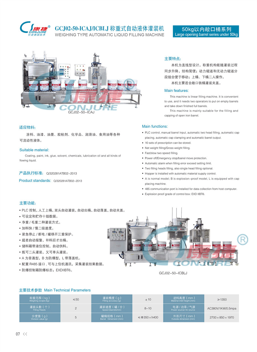 GCJ02-50-ICAJ/ICBLJ稱重式自動(dòng)液體灌裝機(jī)